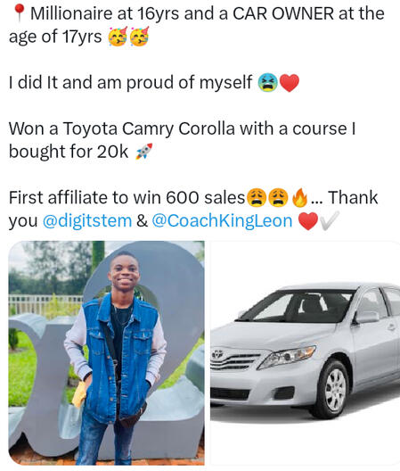 This is Joe, a 17 year old boy, he started this business at 16, became a millionaire at 16 and now he won a car doing this business a sponsored vacation trip to Rwanda & Maldives & lots more.